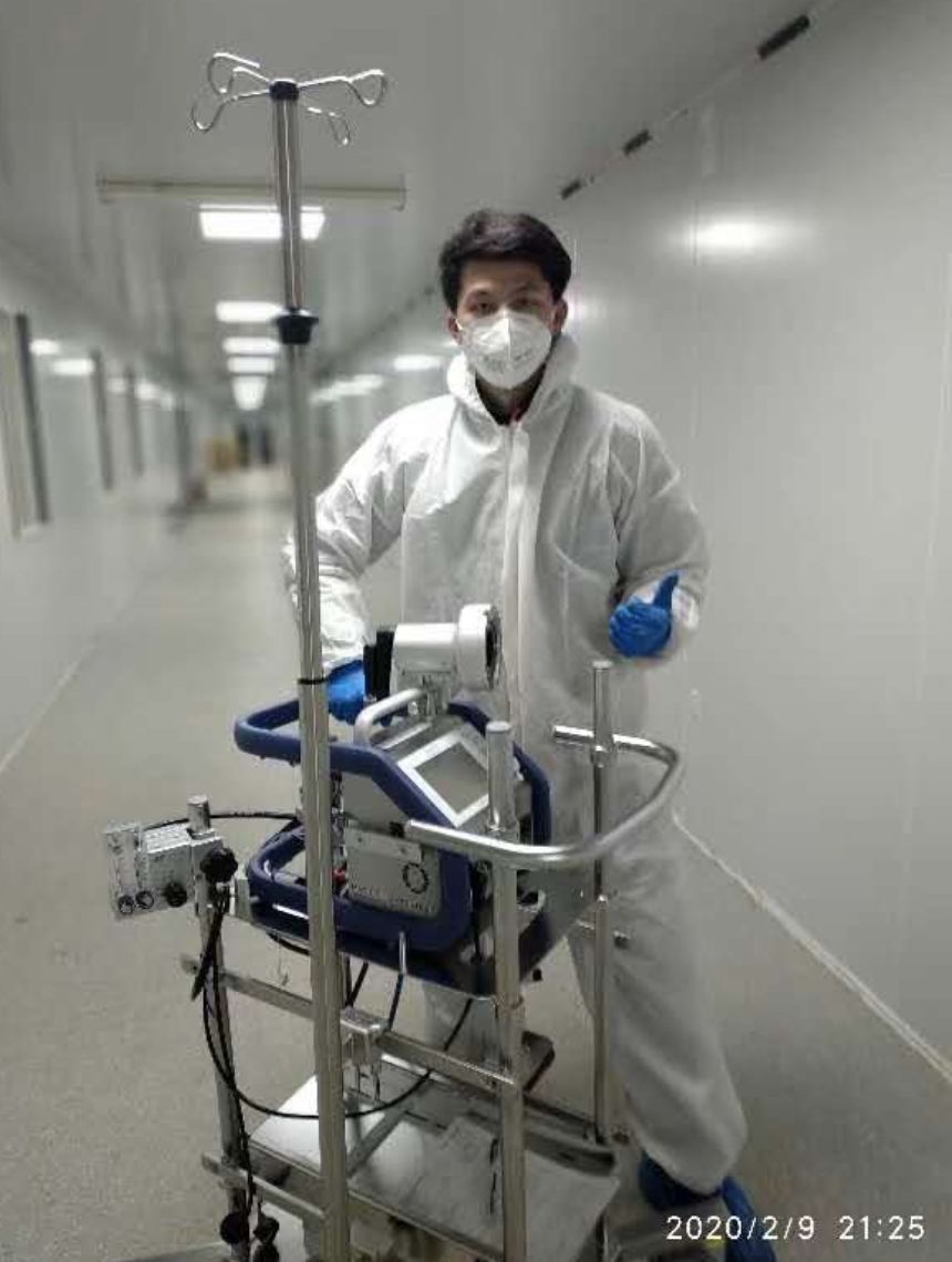 现在,软件、细节这些交给工程师,柜子、底座和组装我都能完成。我和雷师傅一起除了安装呼吸机,也安装治疗新冠肺炎的神器ECMO和紫光杀菌机器人,就是紫外线灯照杀菌的机器人。我们是黄金搭档!有一次,在泰康同济医院,一个通宵,我们就安装了十五台呼吸机。