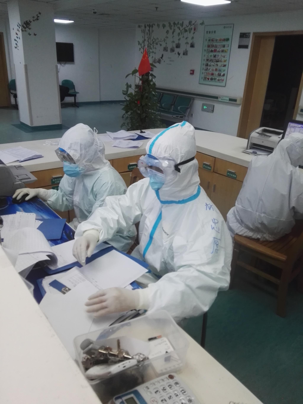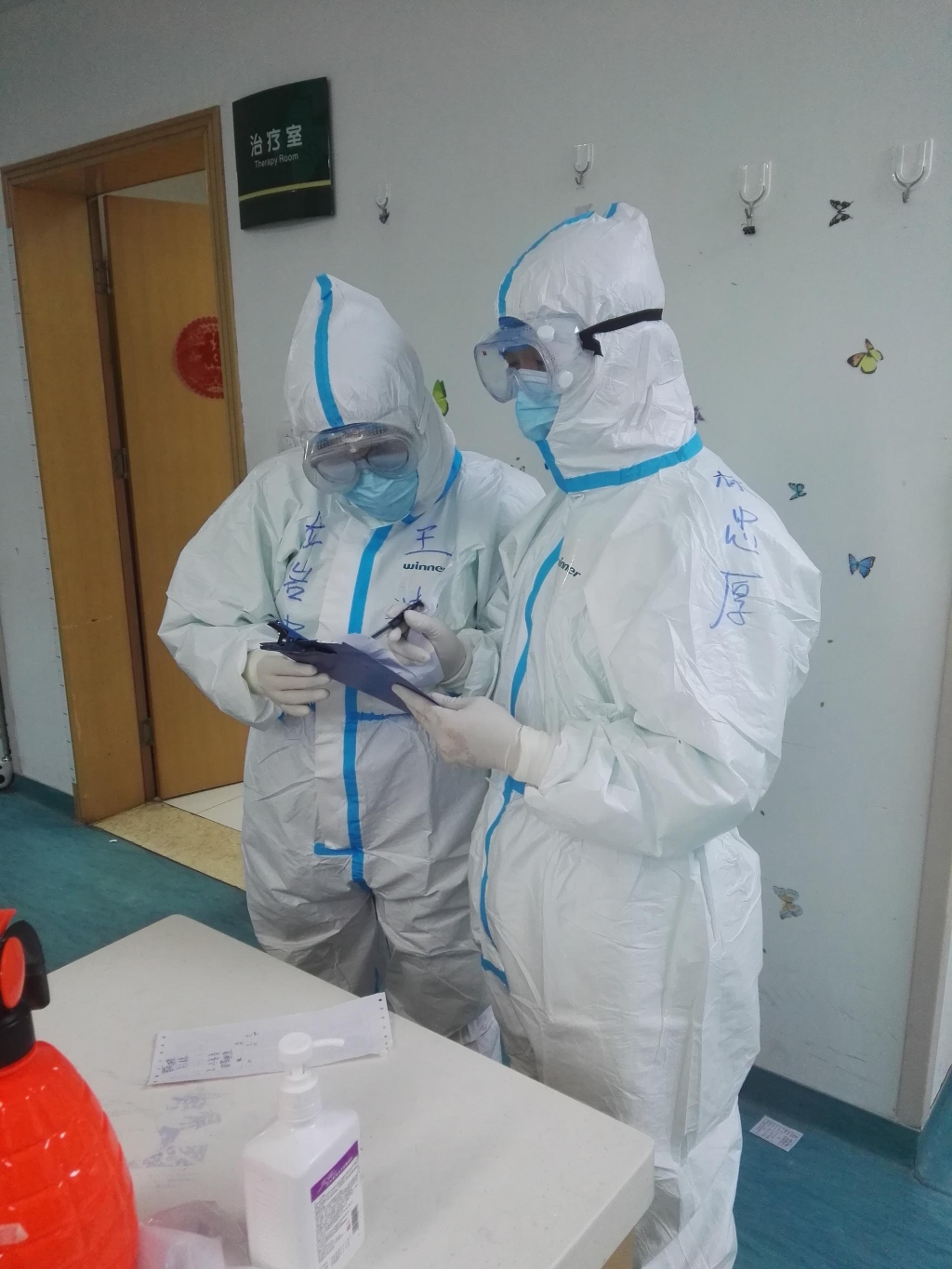 我们一天的工作时间是4-6个小时,采取轮班制。但六个小时里,我们全程身着防护服奔跑在各大病区和病房之间。