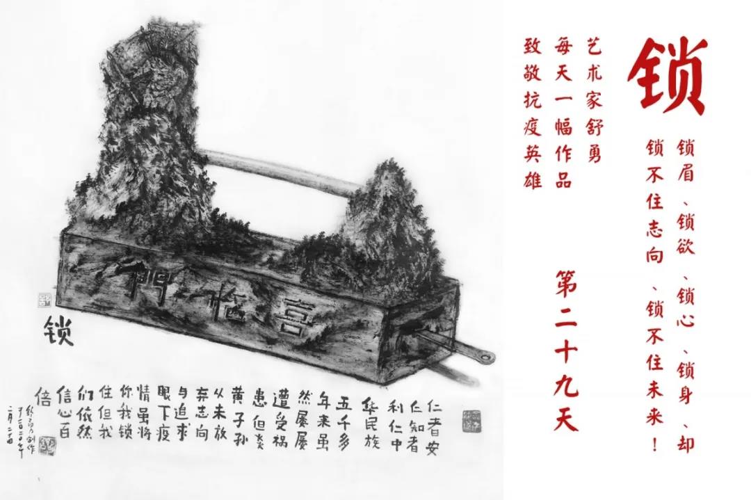 舒勇:在今天来看,用满意或者特别来形容,很难表达我这次创作行动的本意。事实上把它放在疫情的大背景下去考量,这个行动与战斗在第一线的医护人员相比,显得单薄与微不足道。但是从自己的角度来审视,这种微不足道的坚持中,让我在灾难中感受到愚公移山的精神力量。我每天画什么,画得好坏与否并不是最重要,重要的是,我通过每天一画,体验到一个艺术家应该用他的胸怀与悲悯以及坚定不移的精神,将一个从苦难中涅槃而生的伟大民族,以艺术的方式进行浓墨重彩的表达,并且引导在灾难中感到恐慌的人们寻找希望之光。从中也让我找到了一个文艺工作者的历史使命与担当。