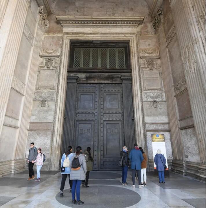 3月9日,在意大利罗马,游客们站在关闭的万神殿外。(新华社发)