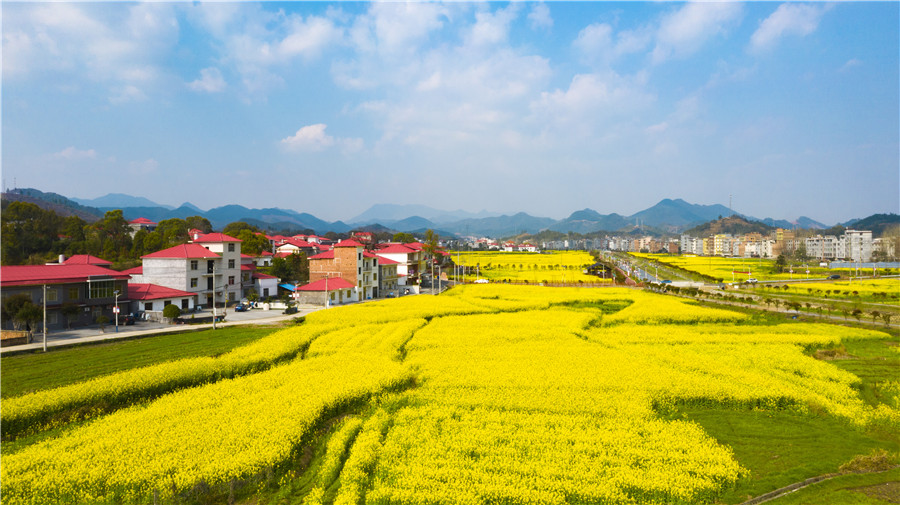 江西省萍乡市上栗县福田镇长塘村罗家屋场,在一片片金黄的油菜花丛中,引来不少赏花人群,正在享受阳光的滋养。随着新农村建设不断推进,长塘村旧貌换新颜,有了潺潺流水,金黄油菜花,一栋栋错落有致的小别墅。当地通过发展特色油菜产业,激活土地产能,助力脱贫攻坚,实现乡村振兴。陈刚摄
