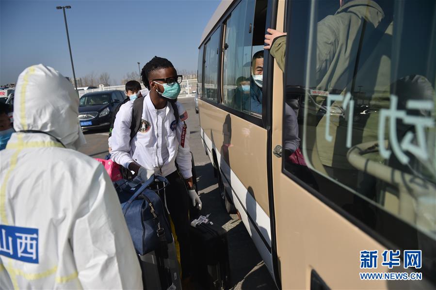 3月17日,外籍入境人员准备登上转运车辆。新华社记者 彭子洋 摄