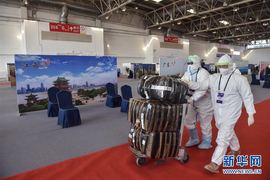3月17日,工作人员帮助入境人员转运行李。 新华社记者 彭子洋 摄