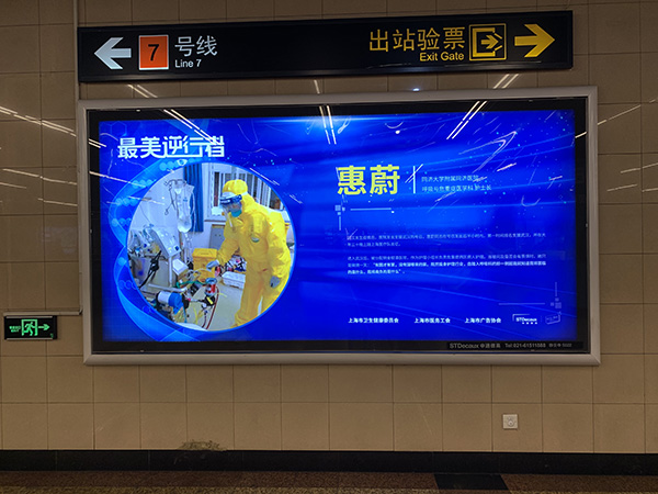 上海申通德高地铁广告有限公司副总经理范辉表示,3月10日起,就在人民广场、静安寺和静安寺等各大地铁站推出了主题为“最美逆行者”的公益宣传。此外,在疫情防控的每个时间节点,申通德高都推出了相应的防疫宣传广告。
