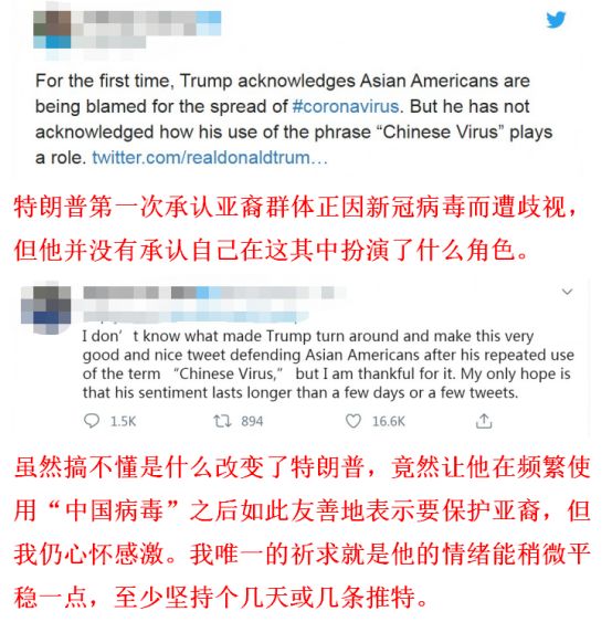 “这是非常重要的……病毒的传播无论如何都不是亚裔的错。相反他们正和我们紧密合作消除病毒。让我们一起战胜它!”特朗普说。