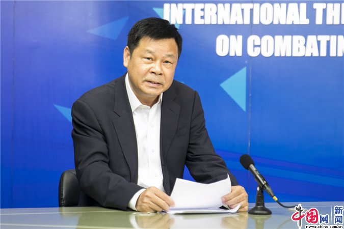 中国外文局局长杜占元在“当代中国与世界——抗击疫情国际智库云论坛”中致辞。摄影 董宁