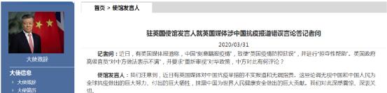 对此,驻英国使馆发言人在短短几天内连发多次声明,驳斥英国媒体对中国抗疫举措的不实报道和无端指责,以正视听。中国驻英使馆就有关报道和言论向英方表达不满,要求予以澄清。英政府高级官员表示,相关报道不代表英国政府立场,英方高度评价中国对国际社会抗击疫情作出的贡献,发展对华关系对英方至关重要。