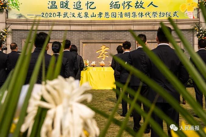 4月4日上午,武汉龙泉山孝恩园举行清明集体代祭扫仪式。参加仪式的全体人员神情肃穆,通过集体默哀、三鞠躬、敬献鲜花等形式向逝者表达哀思。由于新冠肺炎疫情防控工作需要,市民无法前来现场扫墓,该园推出了集体祭扫、网络祭扫等祭扫方式。