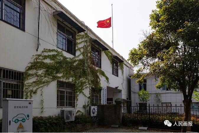 4月4日,在武汉,升国旗场所降半旗致哀。