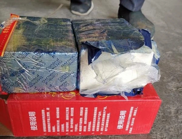 3月30日11时许,昆明市公安局盘龙禁毒大队民警在某物流园开展日常检查工作时,在一个快运点发现两个由孟定县发往昆明的可疑包裹,两个包裹一个是上面写有“金菜花大豆油”字样的黄色纸箱、另一个是写有“甜心酥饼干”字样的白色纸箱。民警随即对该物流信息,包裹来源去向等信息开展分析调查。经过民警蹲点守候,于当日11时40分许,在该快运点抓获前来接取包裹的犯罪嫌疑人1名,并当场从两个包裹中查获用海洛因25块,净重37.5公斤。