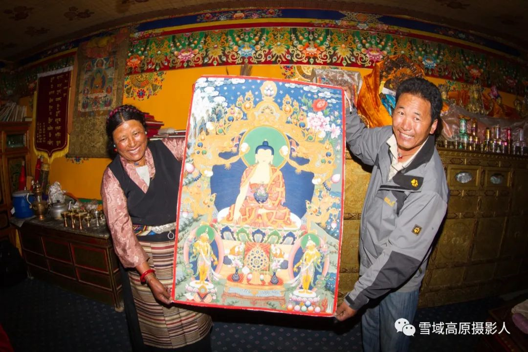 西藏是个受神灵保佑的地方,千百年来佛教文化的点点滴滴都深刻在信徒们的心中,他们相信无论走到哪里,只要有神灵的护佑,便是最平安的。唐卡就像可移动的神灵,信徒们把唐卡画中的圣像作为修行中观想和膜拜的对象;牧民们外出放牧,出门远行也会拜唐卡;人们相信唐卡具有来自神的灵性,可以让人在生活中化险为夷。拜唐卡早已经成为一种习惯,藏族居家、庄园的经堂里都有悬挂唐卡,最多的释迦牟尼唐卡,也有家挂着布达拉宫唐卡的,唐卡既是赏心悦目的艺术品,而供养唐卡是一种积功德的行为。众信们把唐卡画中的圣像作为修行观想和膜拜的对象,悬挂于家庭佛堂,唐卡做为一种神圣的信物,被虔诚的佛教信徏们所衷爱。