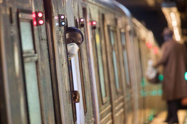 4月13日,在美国纽约,一名地铁员工佩戴口罩工作。 新华社发