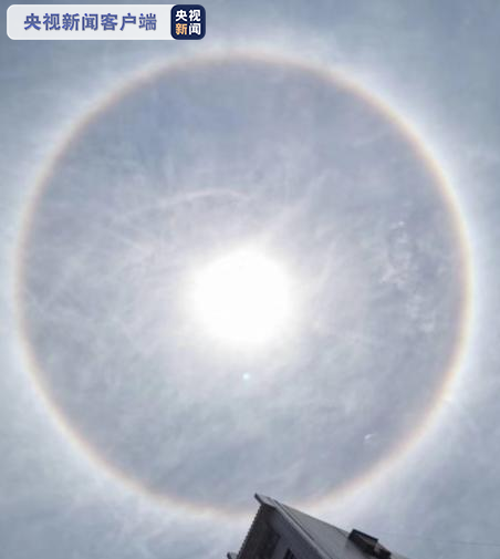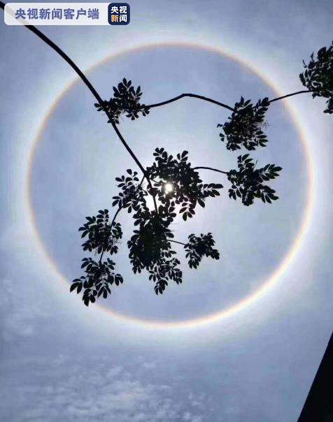 4月26日中午,广西南宁、柳州、河池、百色等多地出现日晕奇景,持续了1小时左右,引得许多市民驻足拍摄。