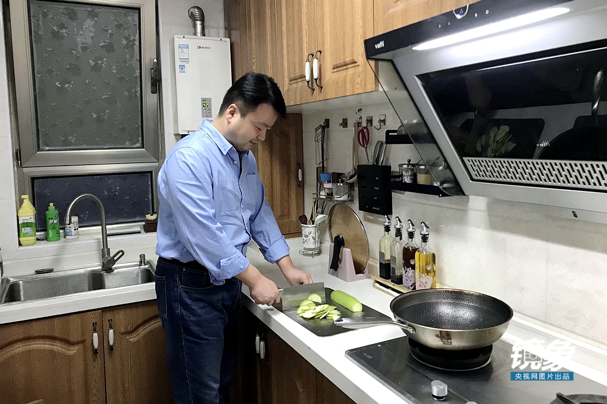 4月30日,王广在家中为妻子和女儿做晚饭。在连续二十余天无假期的特殊状态后,王广迎来难得的一个“休息日”。