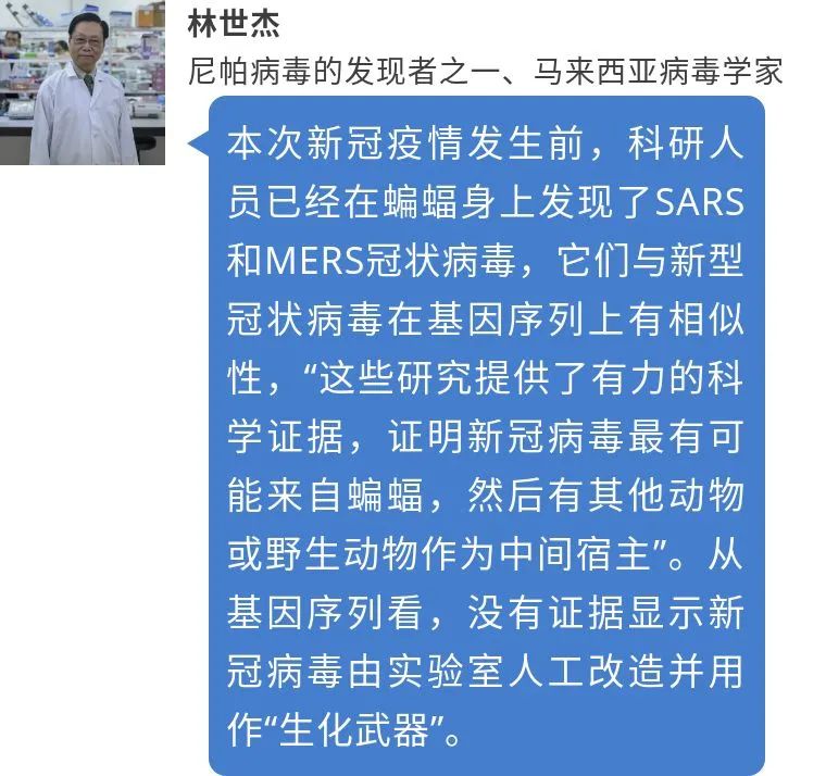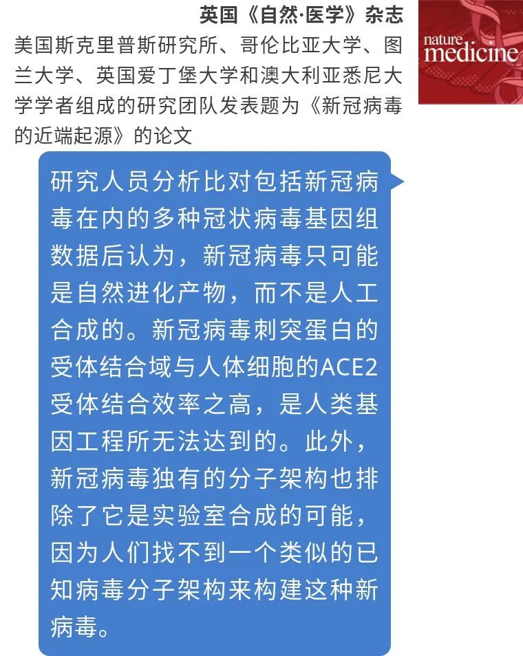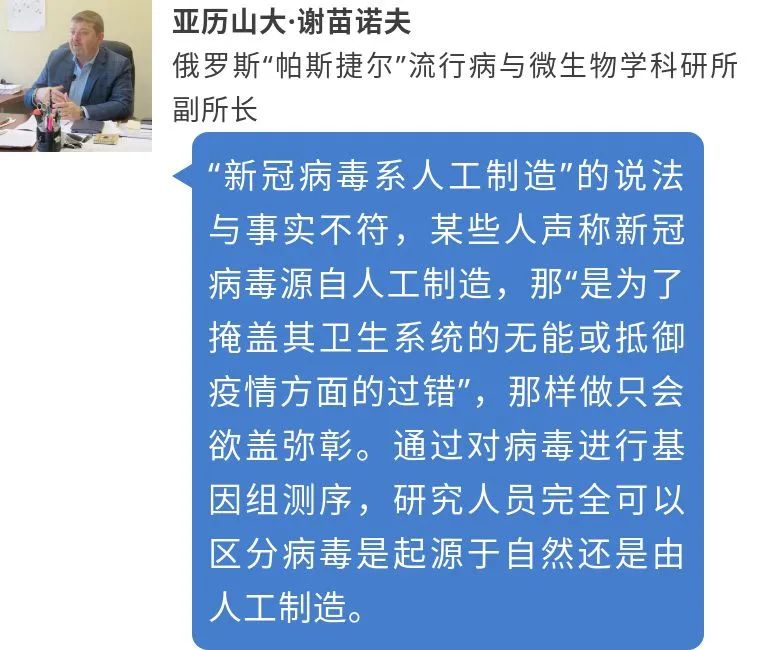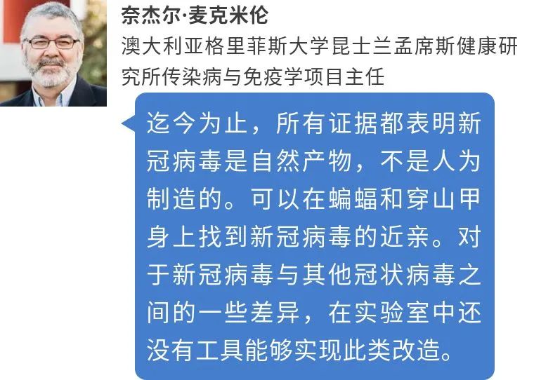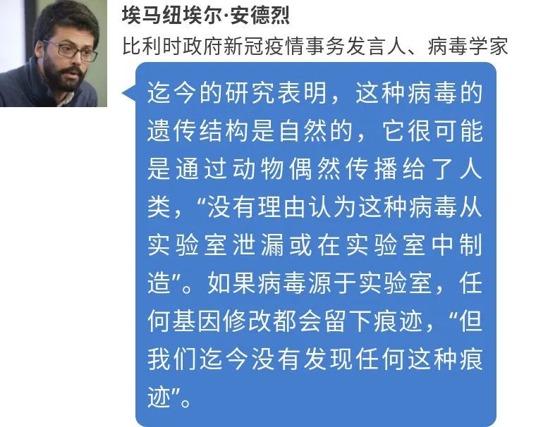 然而,自今年年初以来,国际权威机构及多数病毒学、免疫学领域学者已一再表示,这种论调是无稽之谈,缺乏科学支持,迄今为止所有证据都表明新冠病毒并非人为制造。
