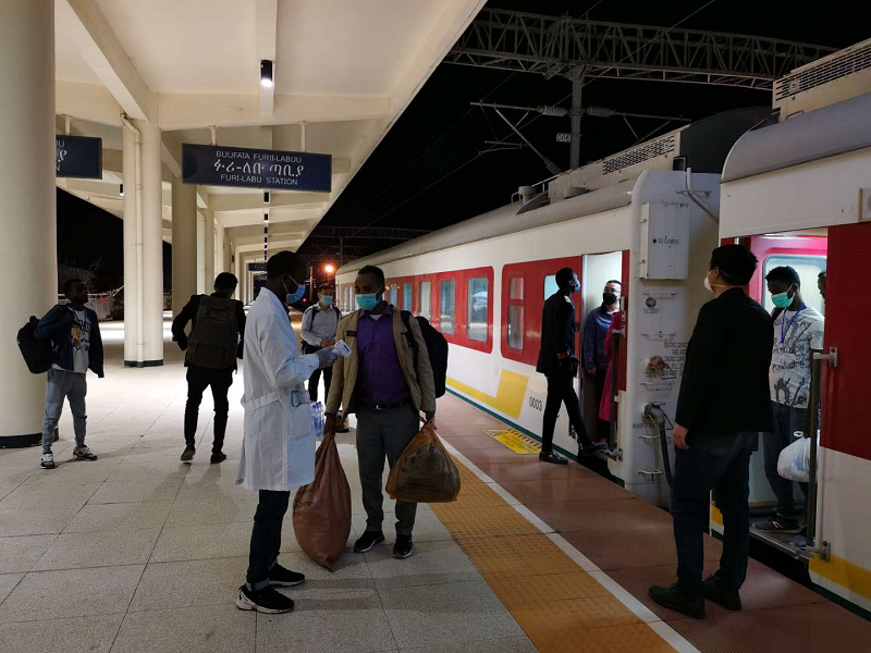 不仅如此,在疫情期间,亚吉铁路还发挥自身运量大、效率高的优势,积极为埃塞提供应急服务。3月份,在埃塞出现疫情之后,一批在埃塞俄比亚东部城市德雷达瓦的大学生急需集中返回首都亚的斯。亚吉铁路科学筹划,在保障车辆清洁卫生的情况下,迅速开行2列临时旅客列车,将1267名大学生迅速撤离德雷达瓦。