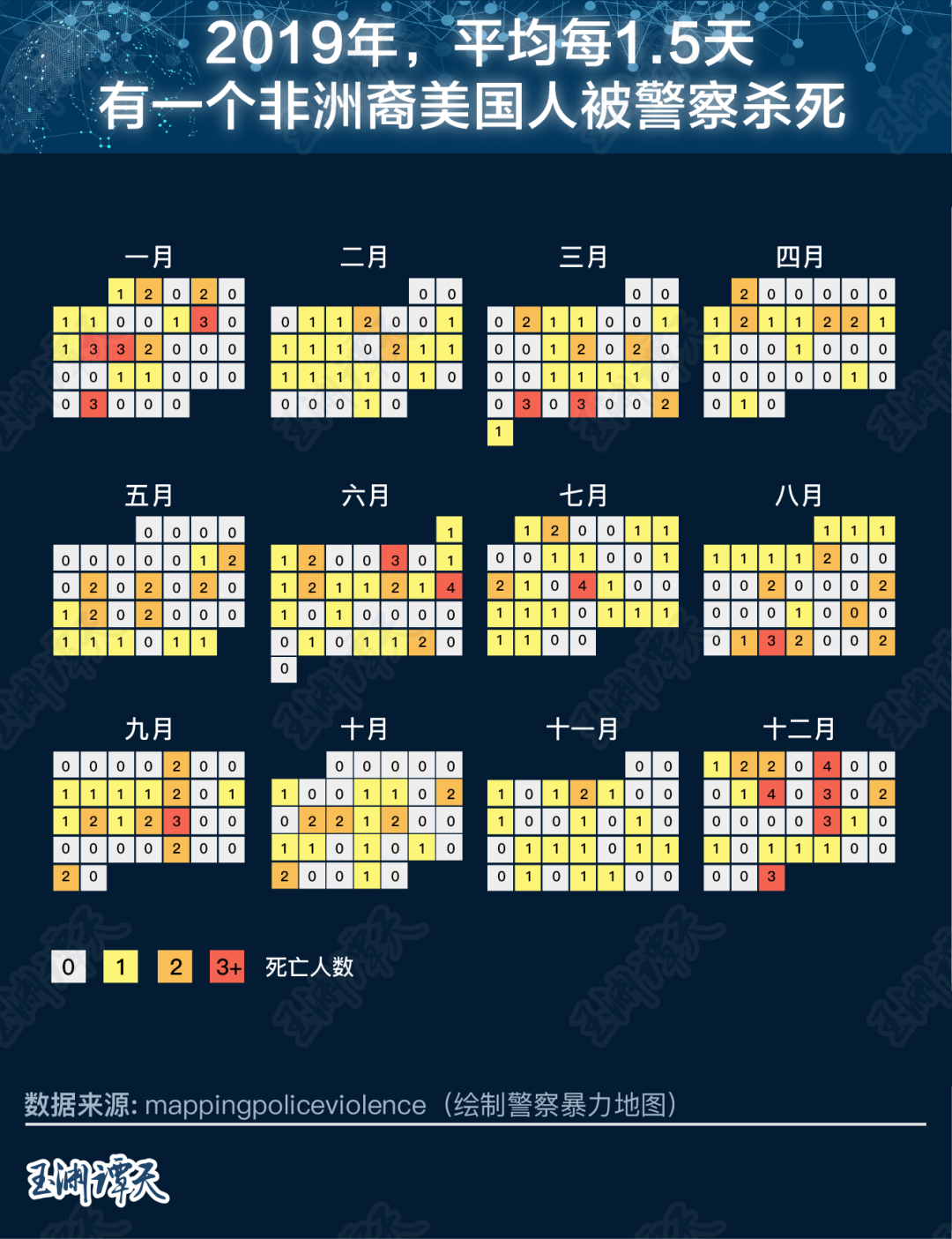 仅在2019年,平均每1.5天就有一名非裔美国人被警察杀死。