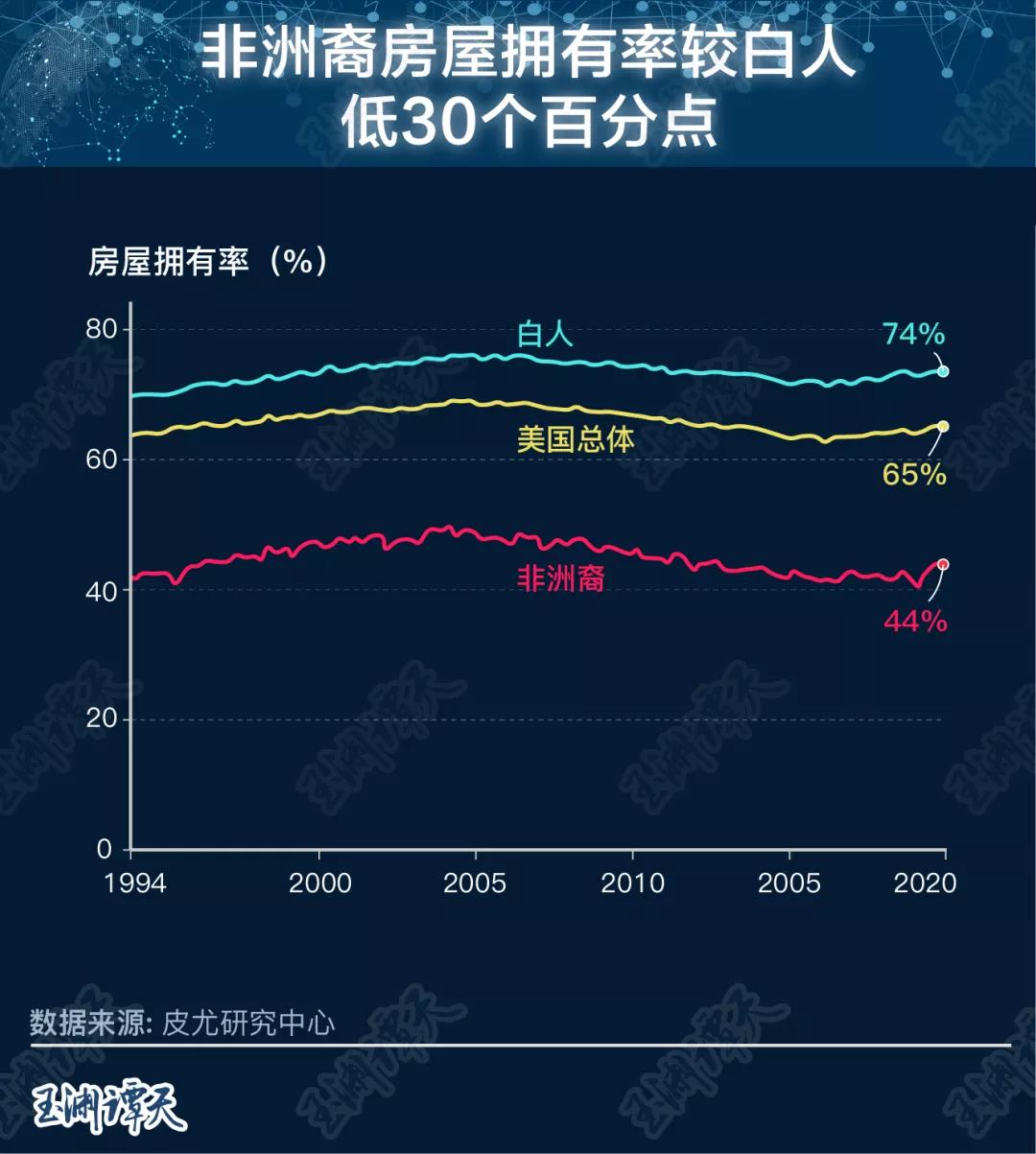 在经济地位上,贫富差距更是不断拉大。在1998年时,非洲裔美国人的财富中位数约为白人的16%,到2016年,甚至下降到了不足10%。