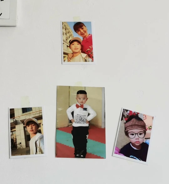 钟美美家中贴的儿时照片。新京报记者王双兴摄