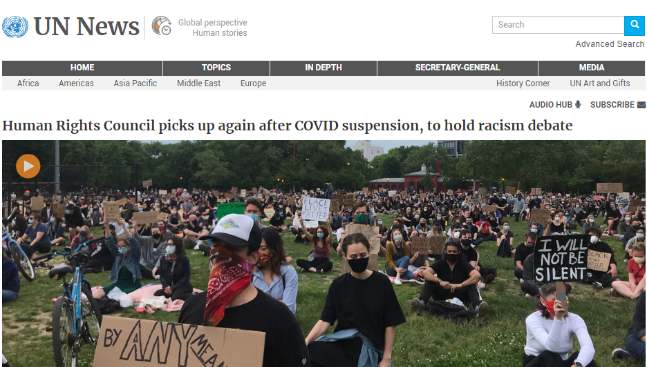 当地时间17日15时,联合国人权理事会第43次会议期间召开种族主义问题紧急辩论。这是联合国人权理事会历史上第5次在会议期间召开紧急辩论,也是联合国人权理事会历史上第一次就美国人权问题召开紧急会议。