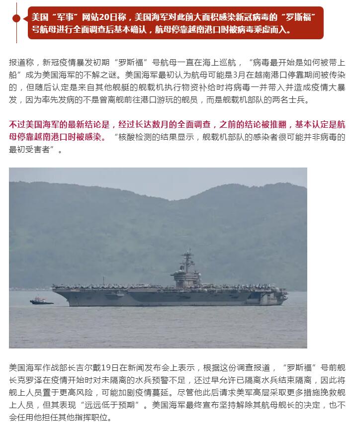 这个锅越南来背!美军认定航母停靠港口时被感染