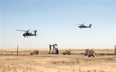 美军直升机和地面装甲车队在叙利亚油田附近