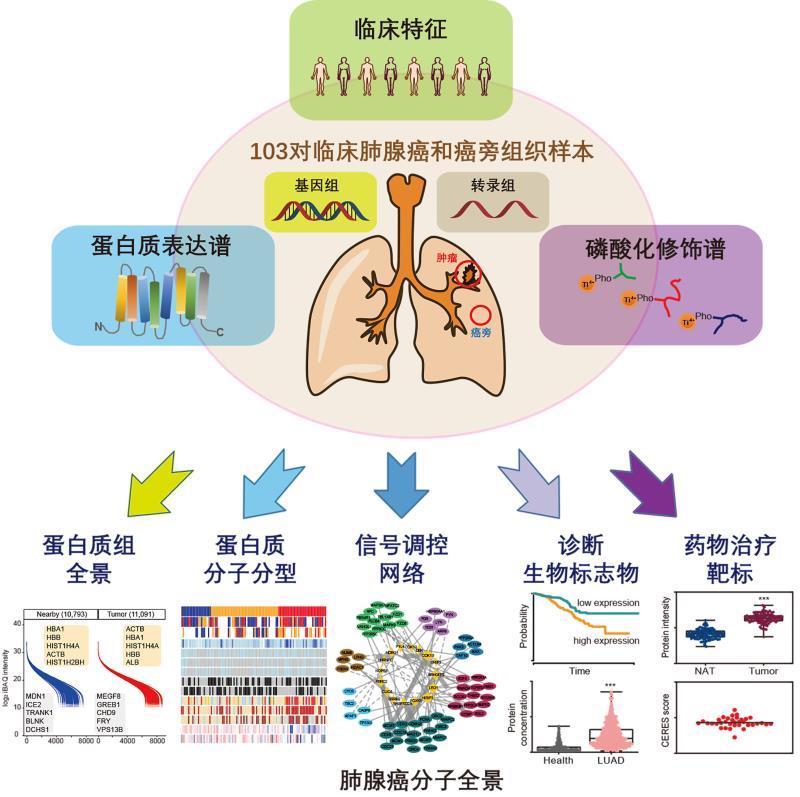 在此项研究中,中国科学院上海药物研究所联合军事科学院军事医学研究院、国家蛋白质科学中心(北京),国家癌症中心/中国医学科学院肿瘤医院,上海交通大学等团队,在国际上首次对肺腺癌开展了大规模、高通量、系统性的全景蛋白质组学研究。