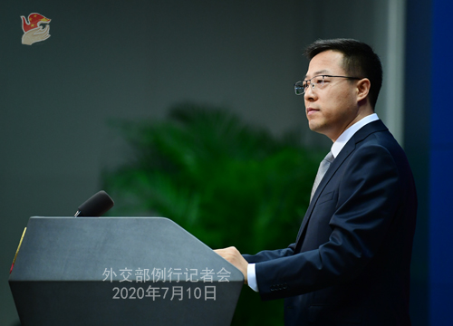 中国网7月10日讯 据外交部网站消息,美国务卿蓬佩奥9日发表声明称,将部分新疆当地的官员列入制裁名单。对此,中国外交部发言人赵立坚在今日的例行记者会上回应,针对美方错误行径,中方决定对在涉疆问题上表现恶劣的有关美国机构和个人采取对等措施。