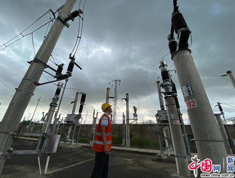 南铁福州供电段变电值班员在台风前巡视检查牵引变电设备。 中国网发 郭涛/摄