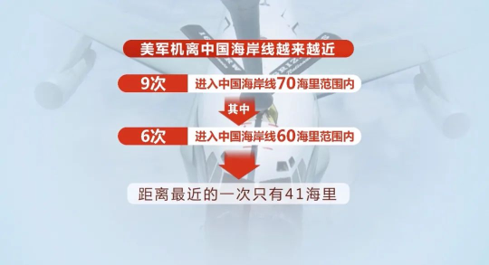 七月,美军机共有9次进入中国海岸线70海里范围内,其中6次进入60海里范围,距离最近的一次只有41海里。