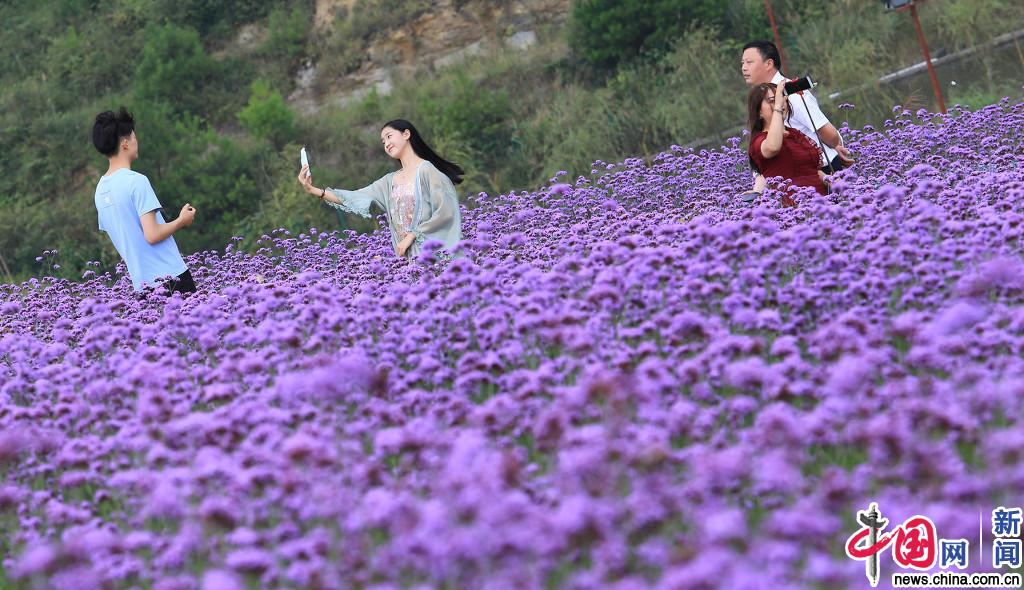 近日,贵阳高坡云顶花海,马鞭草在秋阳下竞相绽放,犹如紫色梦幻花海,令人赏心悦目,吸引众多市民、游客前来观赏。译码员/IC photo