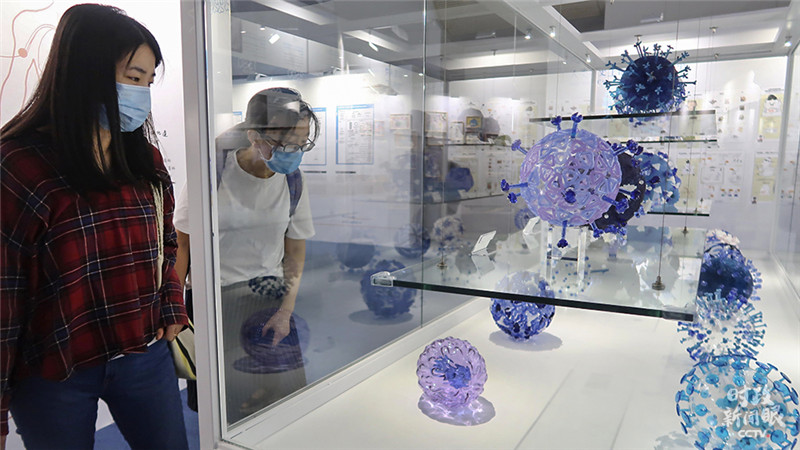 △“命运与共,携手抗疫——科技与健康同行”主题展览7月在上海科技馆开幕,这是展览现场。