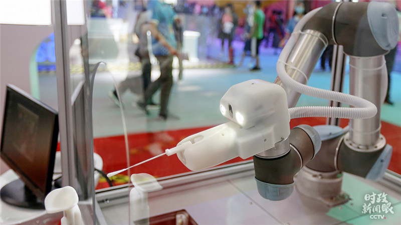 △在今年服贸会上亮相的咽拭子采样机器人。