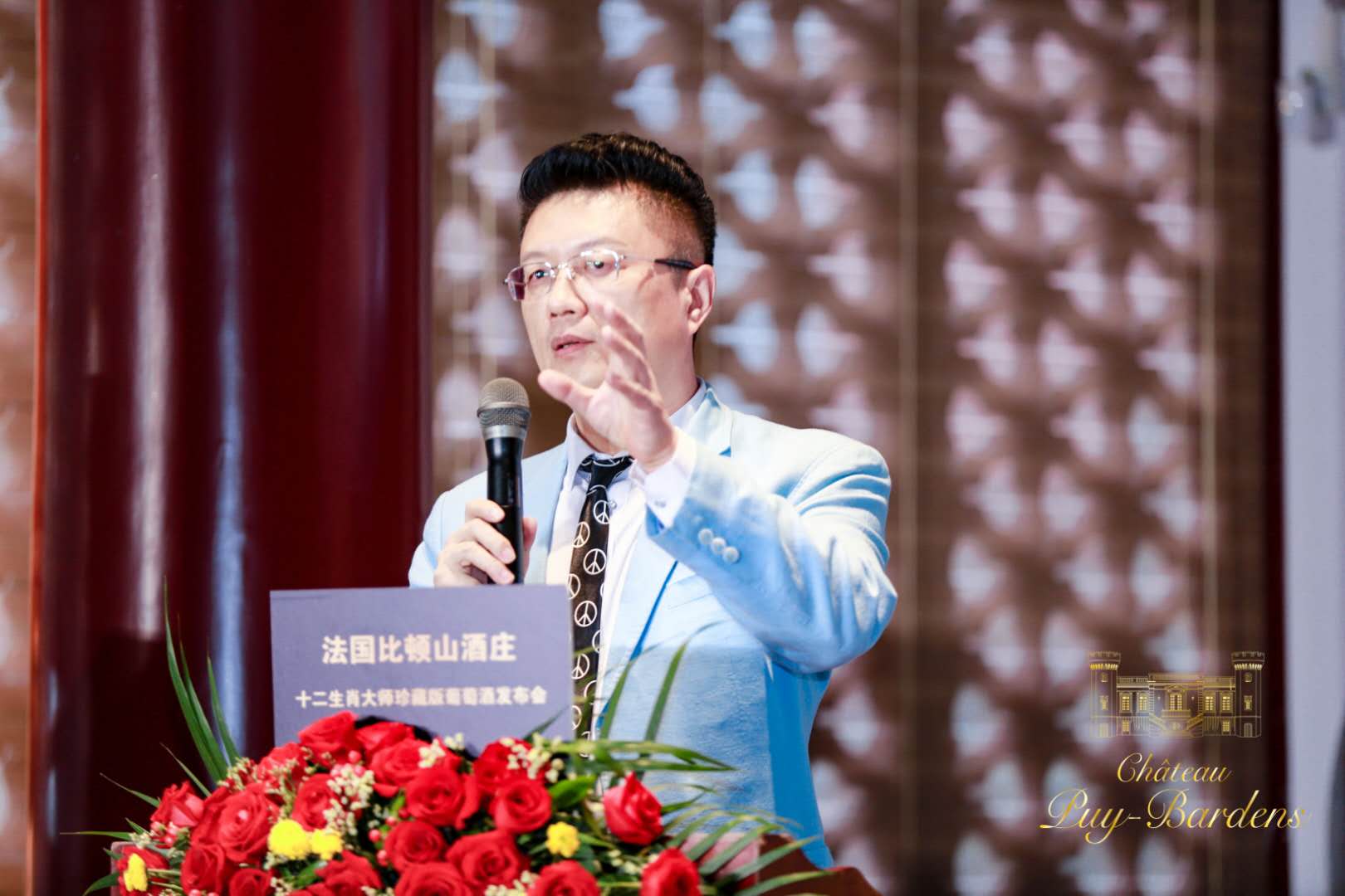 本次发布的主题葡萄酒名为:“十二生肖大师珍藏版葡萄酒”。它是法国酿酒大师史蒂芬·图同济(Stéphane TOUTOUNDJI)先生亲手酿造调配,获得了巴黎农业大赛金奖,可称为葡萄酒中的艺术品。