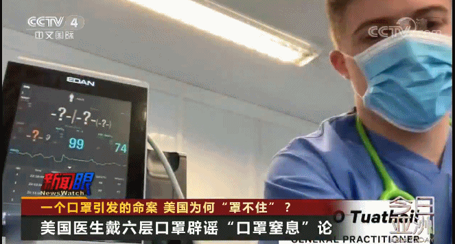 此前,美国网络上有人称,佩戴口罩会阻止人正常吸入氧气,从而造成窒息的情况。造谣一张嘴,辟谣跑断腿。为了辟谣,就有医生专门用实验展示在戴口罩前后,他摄入的氧气量并没有变化。