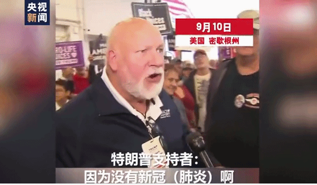 当地时间9月10日,美国总统特朗普在密歇根州弗里兰市举行了一场竞选集会,约5000人到场参加。然而,据美国有线电视新闻网(CNN)报道,这数千人中,很少有人佩戴口罩。