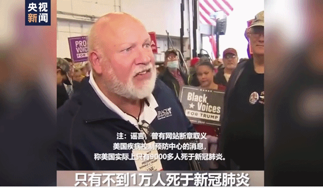 美国民众:疾控中心说过,只有不到1万人死于新冠肺炎。(注:曾有网站断章取义美国疾控中心消息,称美国实际上只有9000多人死于新冠肺炎。)