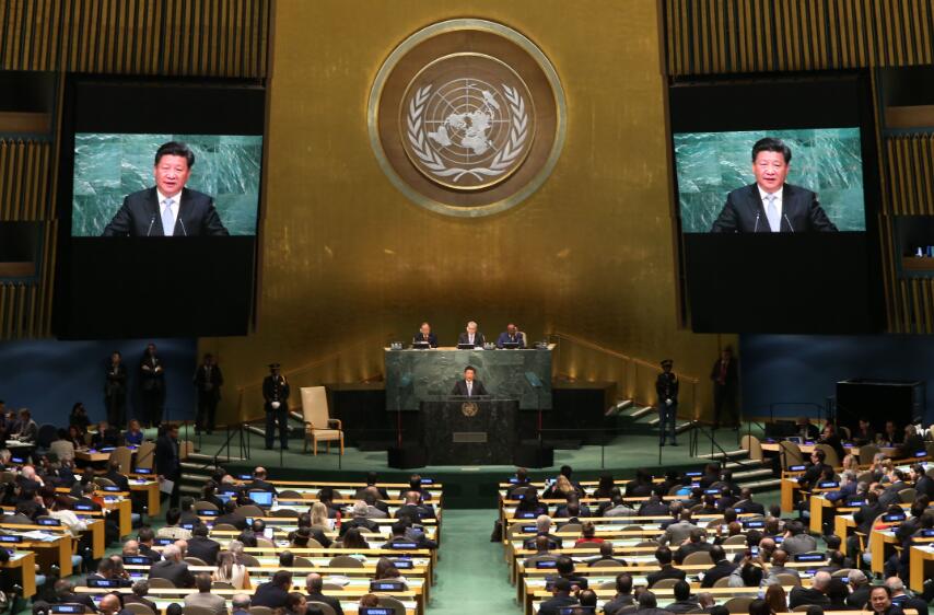 2015年9月28日,习近平主席在纽约联合国总部出席第70届联合国大会一般性辩论并发表题为《携手构建合作共赢新伙伴 同心打造人类命运共同体》的重要讲话。