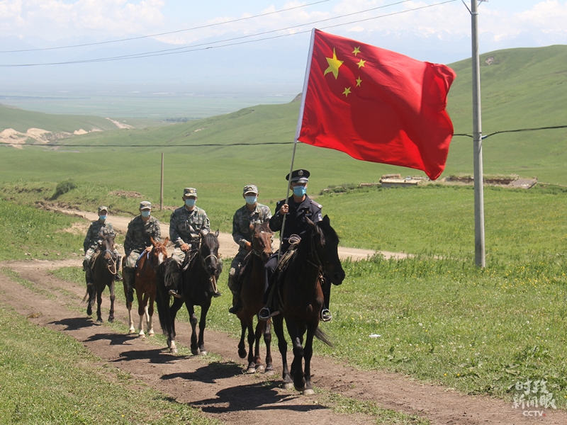 新疆伊犁昭苏县洪土沟边境检查站民警和护边员在边境线踏查。