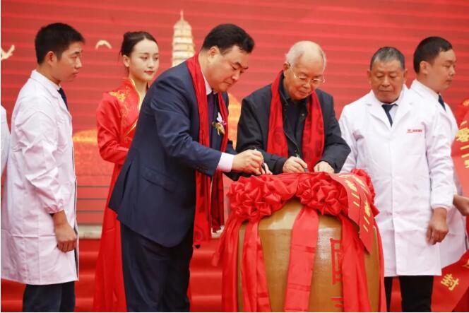 典礼活动重要环节——宜宾国美酒业2020年封坛大典正式拉开帷幕, 在一系列盛世擂鼓、敬香祈福等环节后,酿酒师持白酒精华上场准备酒盖、封条,将佳酿封于原始古朴的陶坛中。