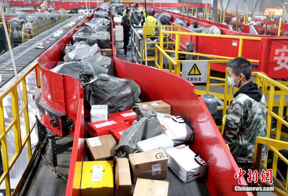 11月11日,位于北京顺义的顺丰速运华北分拨中心员工分拣快递。据中国国家邮政局消息,“双十一”期间(11月11日至16日)将出现快递业务旺季峰值,预计日均快递业务量达4.9亿件,约是日常业务量的2倍。中新社记者 张宇 摄