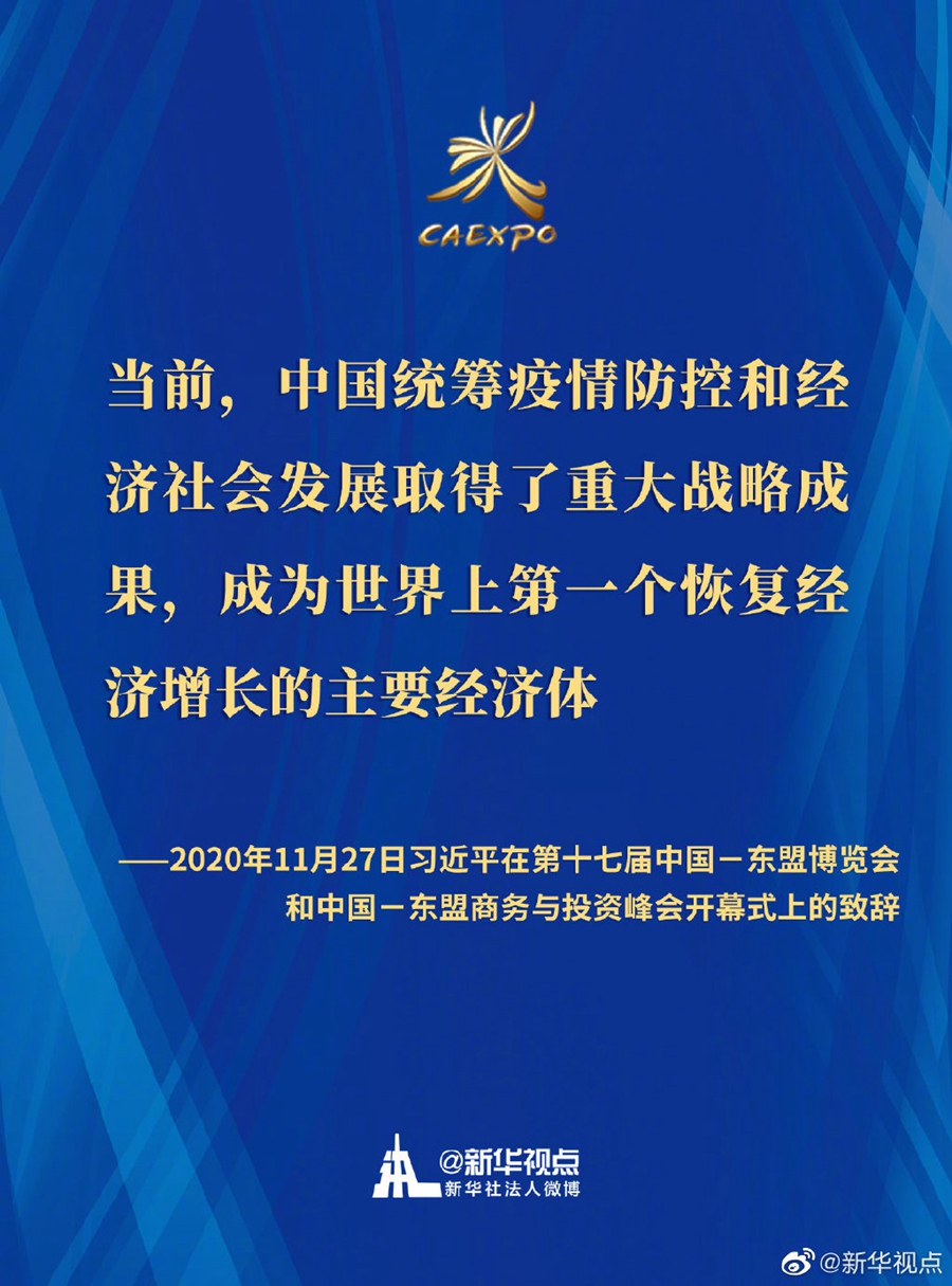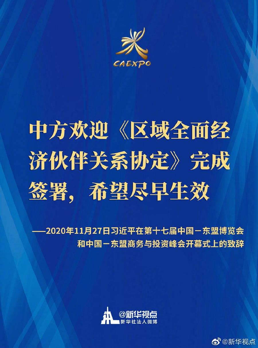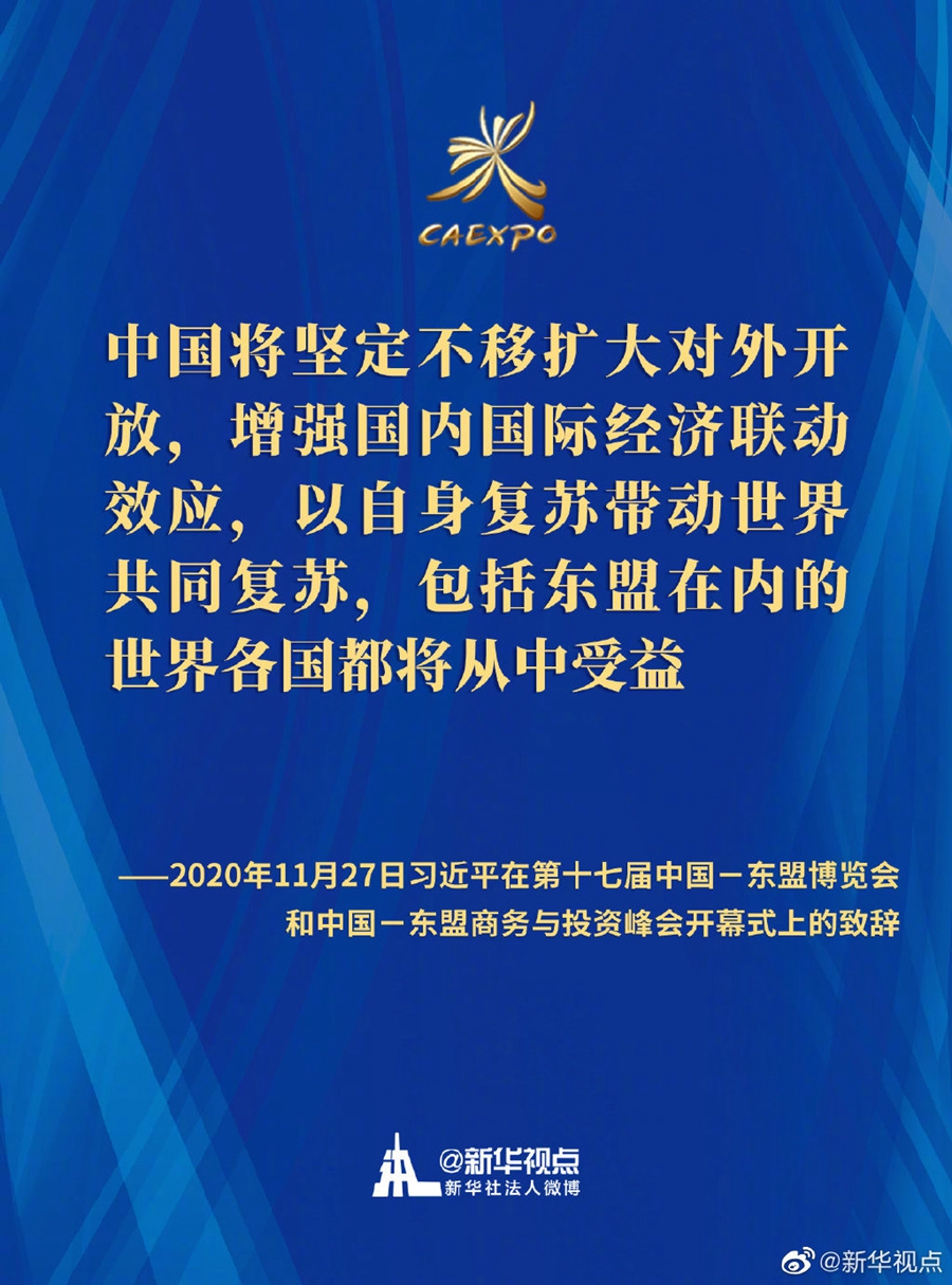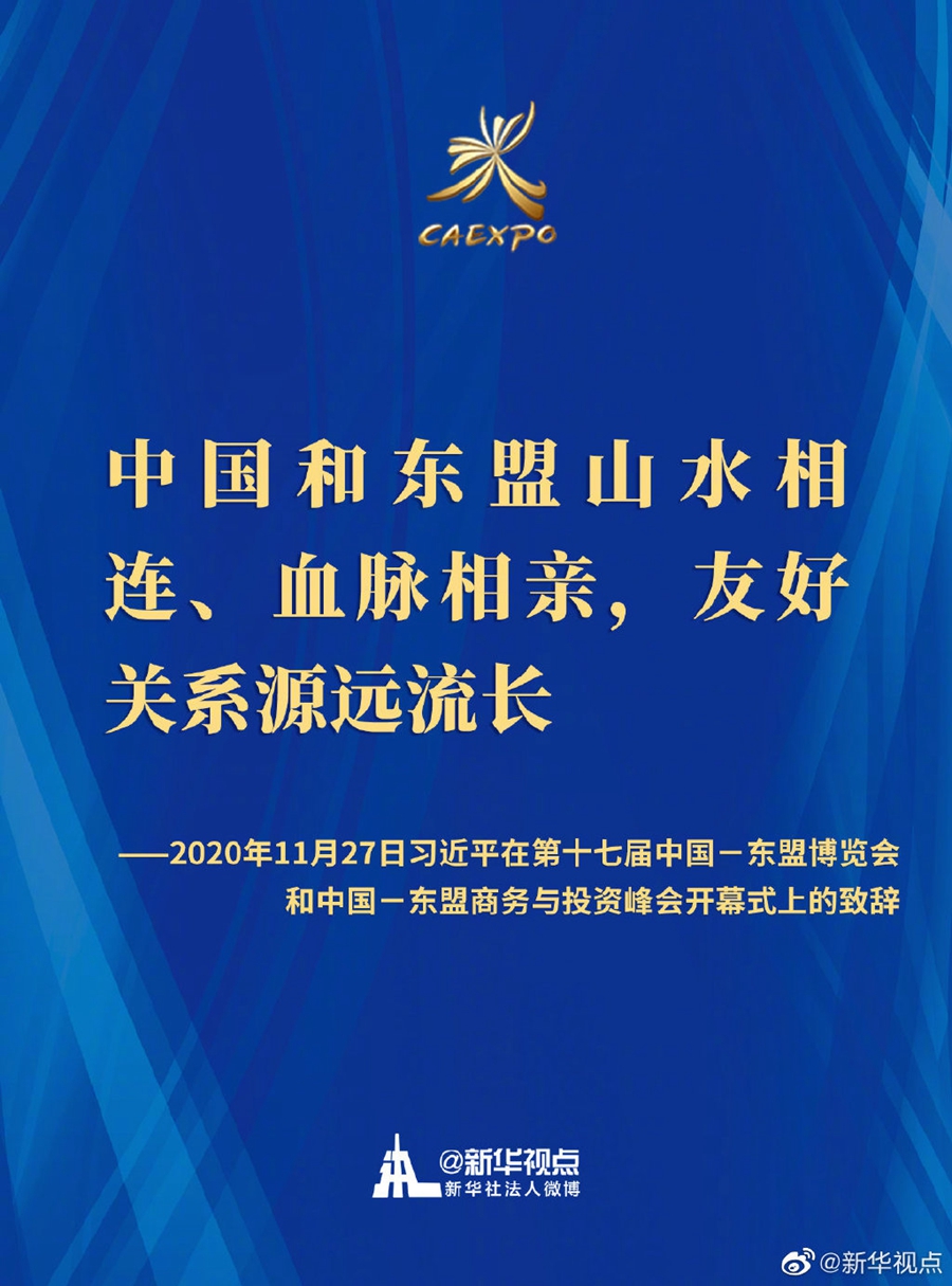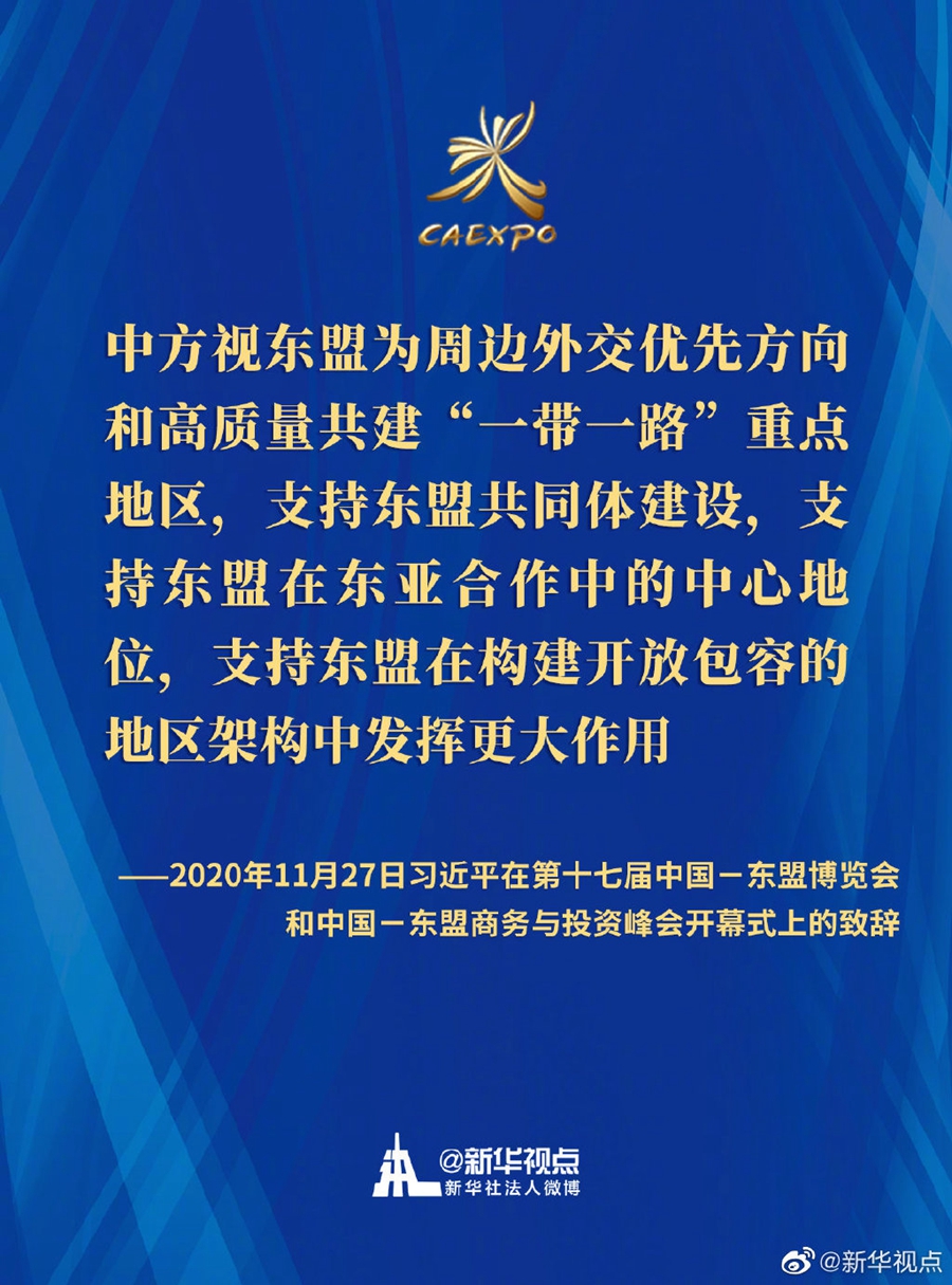 第十七届中国-东盟博览会和中国-东盟商务与投资峰会开幕式11月27日在广西南宁举行。国家主席习近平在北京以视频方式发表致辞。一起来划重点