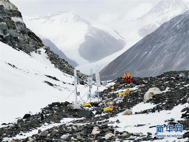 这是架设在海拔6500米珠峰前进营地附近的5G基站(4月19日摄)。 新华社发(中国移动供图)