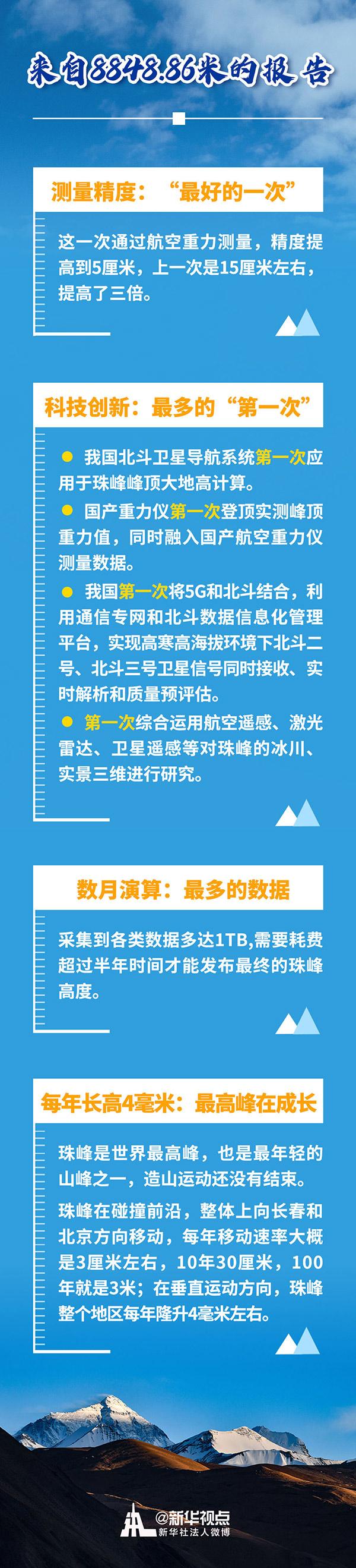 8848.86米:作为世界最高峰的珠穆朗玛峰最新“身高”8日公布。自然资源部权威人士说,同上一次测量结果相比,此次测量数据的科学性、可靠性、创新性,都达到一个新高度。