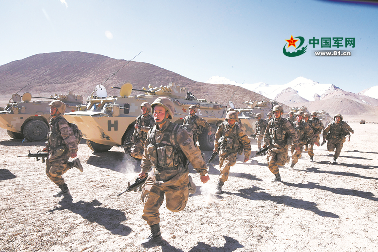 高原某陌生地域,新疆军区某师合成团进行应急出动演练。刘显伟摄