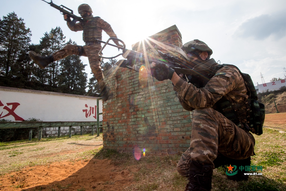2020年3月5日,两名特战队员交替掩护通过障碍。在战术协同训练中,队员的团队意识不断增强,打赢能力不断提升。胡程摄