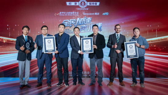 12月25日,吉尼斯世界纪录官方认证官杨绍鹏在北京宣布,由新华社全媒编辑中心、腾讯、QQ飞车共同发起的“全民加速奔小康”活动成功创造了一项新的吉尼斯世界纪录。新华社全媒编辑中心副主任钱彤、田朝晖与腾讯集团副总裁程武也亲临活动现场,见证了这一新纪录诞生。
