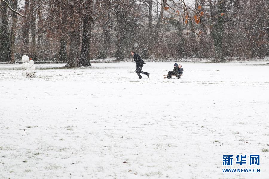当日,德国柏林迎来2021年的首场降雪。新华社记者 单宇琦 摄
