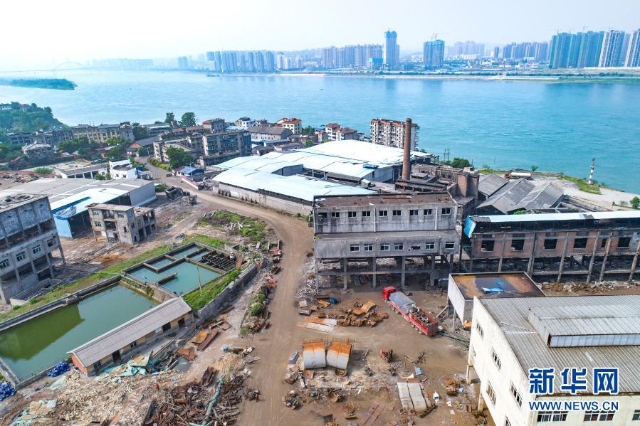 这是2018年4月30日拍摄的湖北宜昌田田化工有限责任公司拆除现场(无人机照片)。新华社记者 肖艺九 摄
