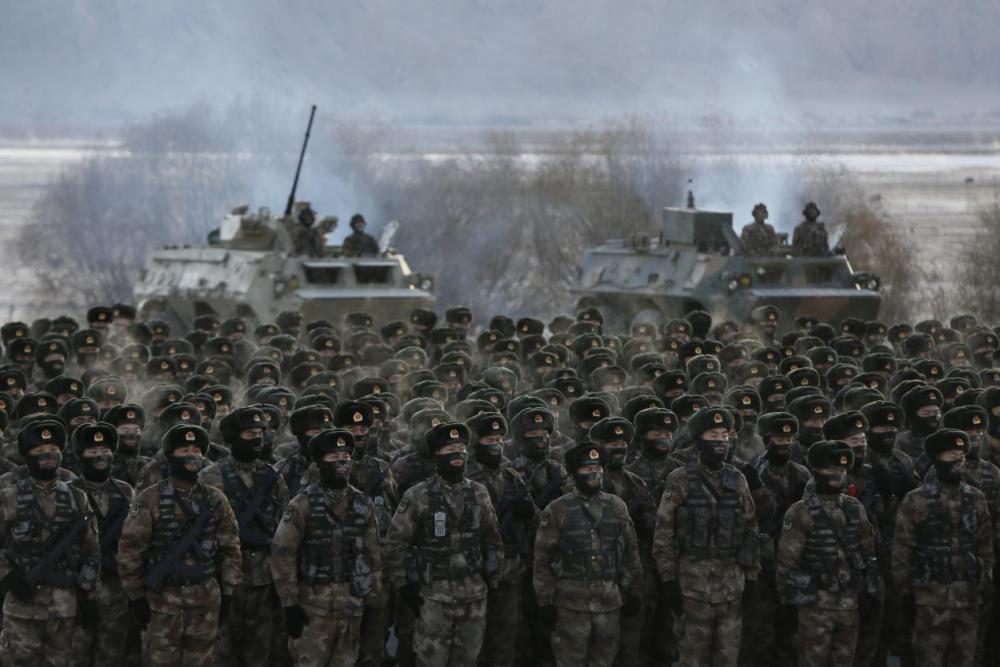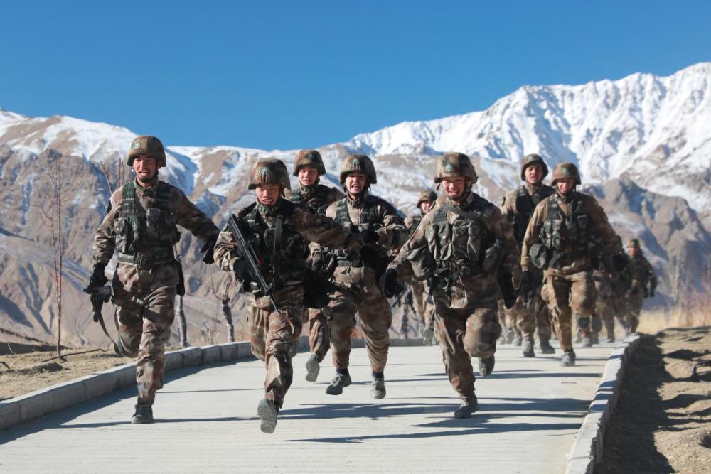 ↑驻守帕米尔高原的某边防团官兵聆听训令
